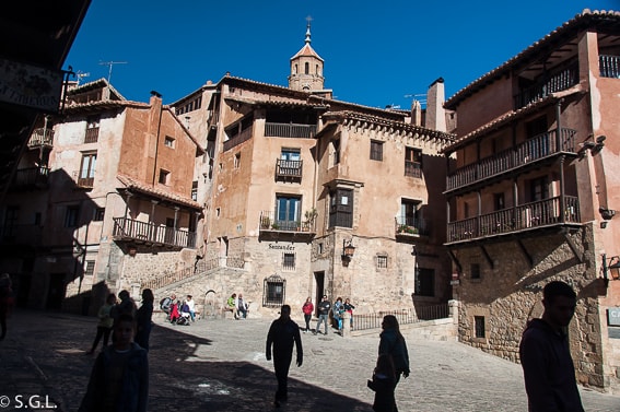 Llegamos en coche a Albarracín y lo dejamos en un aparcamiento que hay habilitado en la parte inferior del pueblo, ya que todo el caso antiguo es peatonal. Justo antes de subir, hay una oficina de información y turismo, donde se puede coger un plano y donde te explican que cosas se pueden ver, tanto en Albarracín como en los alrededores. Nosotros, habíamos reservado una visita guiada con la empresa El andador, qué tan buen resultado nos había dado visitando Teruel, del mudéjar al modernismo. La visita dura 1 hora y 30 minutos y se conocen los lugares más importantes del casco antiguo, junto con la historia del lugar. La visita la comenzamos en la Plaza Mayor y fuimos callejeando por los lugares más importantes de Albarracín.