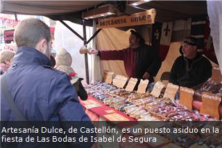 Uno de los puestos tradicionales que asisten a Las Bodas de Isabel de Segura es Artesanía Dulce, que lo regentan dos argentinos y que llevan 7 años seguidos asistiendo a la fiesta de Los Amantes de Teruel. Con su puesto de semillas naturales y garrapiñadas en la calle San Juan, Sergio Ginocumelli afirmó que Las Bodas de Isabel de Segura es la mejor fiesta medieval que conocen de España por la implicación de la gente. «Como fiesta medieval no hay comparación con otros lugares». También apuntó, en cuanto a precio por lo que se cobra por el puesto, que no es cara dada la calidad de la fiesta y confiaba en que habría buena venta.