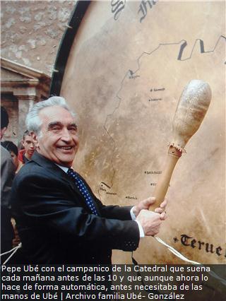 El día 27 de enero las campanas de la Catedral de Teruel lloraron. Ahora solo se tocan en momentos especiales, como el funeral de Diego e Isabel, pero la muerte de Pepe Ubé, el campanero de la Catedral, lo era. Él mismo las hizo sonar con sus propias manos desde que tenía seis años y toda su vida estuvo vinculada a ellas, incluso hizo creer a cada uno de sus hijos que vinieron al mundo bajo una de las que hay en la torre.